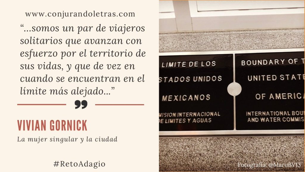 “….somos un par de viajeros solitarios que avanzan con esfuerzo por el territorio de sus vidas, y que de vez en cuando se encuentran en el límite más alejado….” #LaMujerSingularYLaCiudad #VivianGornik (Ver)